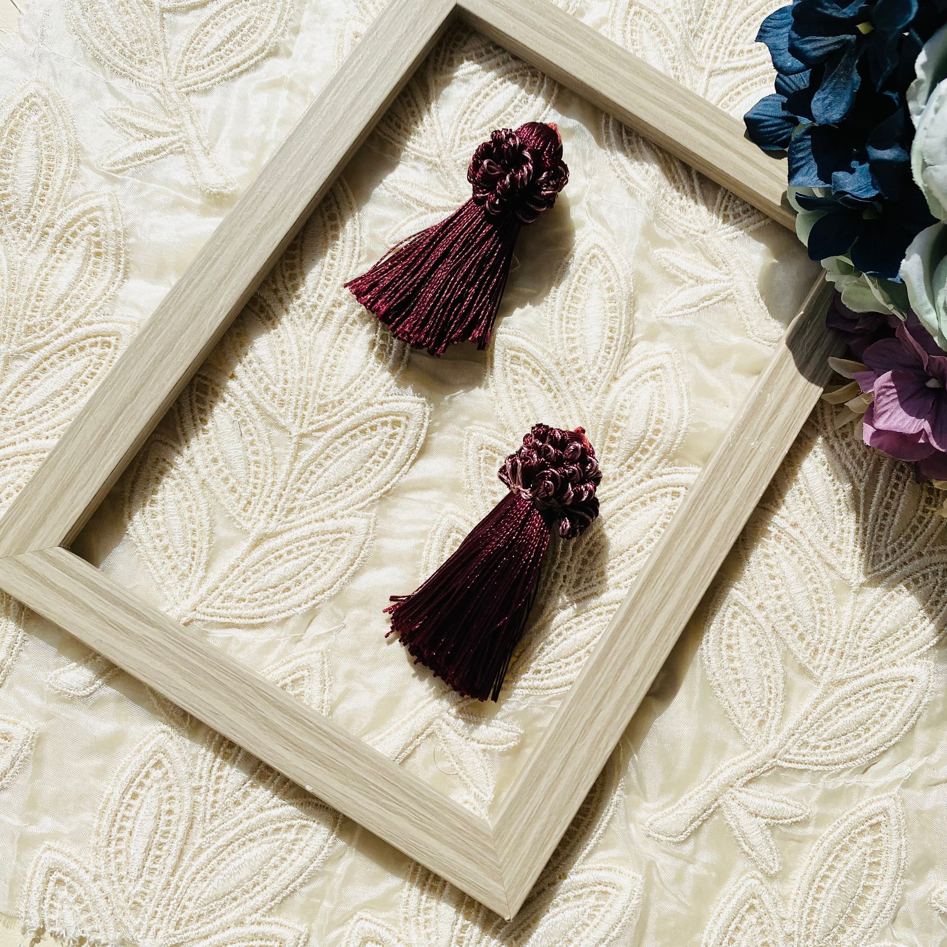 ※丸カンは付属しておりません。タッセル本体にカンを通すか上部の糸にカンを通してお使いください。
